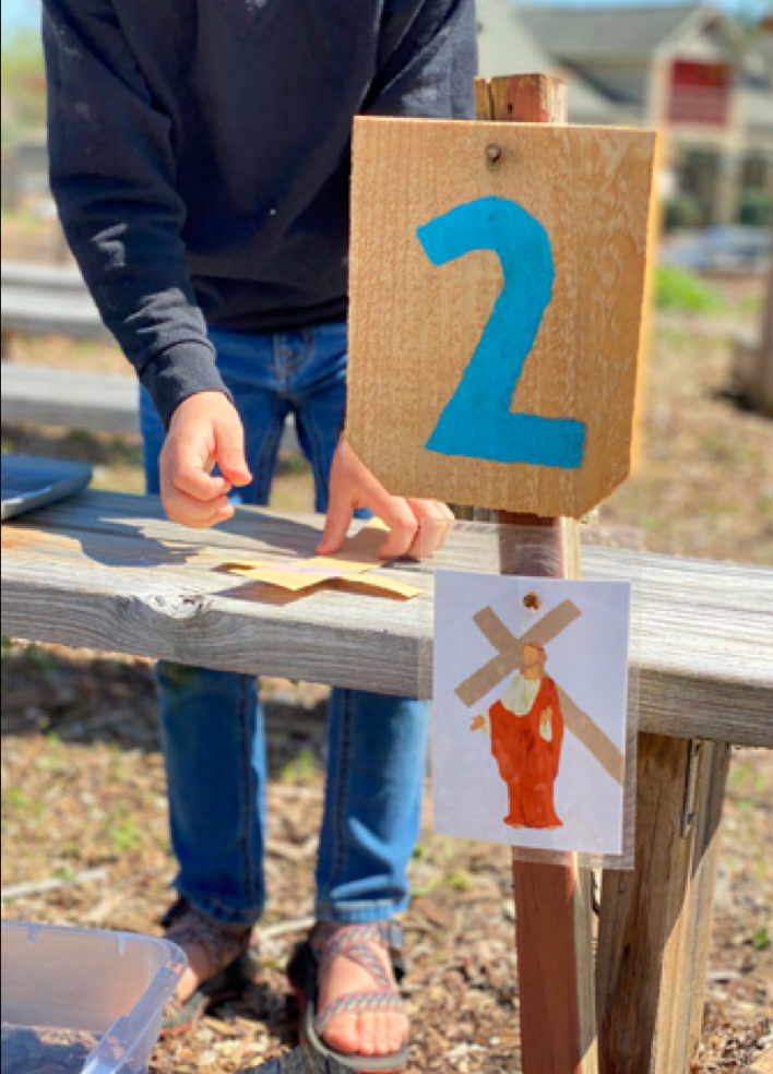 The Redeemer Kids Team also makes intentional choices. We choose to prioritize these hard truths and contextualize them for adults and children alike. It would be easier to avoid these painful moments, but God would not receive the glory, and we would miss the opportunity to recognize the depth of His love. The Stations of the Cross at Church of the Redeemer is designed to be prayerfully walked but also humbly interacted with, allowing for pilgrims of all ages and walks of life to receive what blessings God wants to give. Each of the fourteen stations includes scripture, prayers, and activities to more concretely remember and experience Jesus’s last moments.
